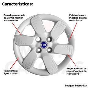 4x calota fiat uno mille palio siena aro 13 emblema 095cb Calota em plástico de alta resistência, Fabricado pela grid calotas com os mesmos padrões e exigências da montadora. Com logotipo incluso. Não serve: Fiat strada - cubo de roda incompatível Fiat palio adventure - cubo de roda incompatível Fiat nova fiorino - cubo de roda incompatível Características: - fabricado em plástico resistente - com dupla camada de verniz - resistente a água e calor - feito de acordo com os padrões da montadora - fixação: por parafusos - furação: 4x100 - cubo: baixo - cor: prata - referência: 095cb - marca: grid calotas Itens inclusos: - um 1 kit com quatro 4 calotas com emblema incluso. Dimensões unitário - diâmetro: 37 cm - altura: 4 cm Instalação A instalação é feita de forma simples, podendo ser feita por você mesmo. Não necessita retirar todos os parafusos. de 30 dias para defeitos de fabricação. Sobre o envio Envio podendo ser feito até o próximo dia útil após confirmação de pagamento. em até 3 , em caso de boleto Política de troca Sempre estamos interessados em sua satisfação. Caso não receba o produto exatamente como no anúncio, com algum defeito ou no transporte, Você poderá trocar e devolver a qualquer momento, sem pressa, sem prazo e principalmente sem custos desde que o produto esteja sem uso e na mesma condição da data da compra . No caso de devolução por compra de tamanho errado, desistência ou mudança de intenção, Neste caso o cliente deve arcar com o custo da devolução da mercadoria e nós arcamos com o custo de reenvio Da mercadoria nova.