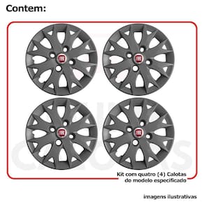 4x Calota Fiat Uno Palio Aro 13 Grafite com Emblema 158cb Calota em Plástico de Alta resistência, Fabricado pela Grid Calotas com os mesmos padrões e exigências da montadora. Com logotipo incluso. SERVE Fiat Uno - até 2013 Fiat Elba - Todos Fiat Premio - Todos Fiat Fiorino - até 2013 Fiat Palio - Todos Fiat Siena - até 2016 NÃO SERVE Fiat Strada - cubo de roda incompatível Fiat Palio Adventure - cubo de roda incompatível Fiat Nova Fiorino - cubo de roda incompatível Fiat Grand Siena - aro de roda maior CARACTERÍSTICAS: - Fabricado em Plástico Resistente - Com dupla camada de verniz - Resistente a água e calor - Feito de acordo com os padrões da montadora - Fixação: por Parafusos - Furação: 4x100 - Cubo: Baixo - Cor: Cinza Grafite - Referência: 158CB - Marca: Grid Calotas ITENS INCLUSOS: DIMENSÕES Unitário - Diâmetro: 37 cm - Altura: 4 cm INSTALAÇÃO A instalação é feita de forma simples, podendo ser feita por você mesmo. Não necessita retirar todos os parafusos. de 30 dias para defeitos de fabricação. Marca: Não Informado