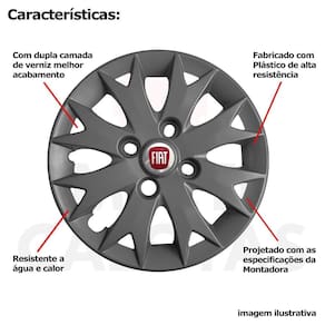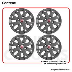 4x Calota Fiat Uno Palio Aro 13 Grafite com Emblema 158cb Calota em Plástico de Alta resistência, Fabricado pela Grid Calotas com os mesmos padrões e exigências da montadora. Com logotipo incluso. SERVE Fiat Uno - até 2013 Fiat Elba - Todos Fiat Premio - Todos Fiat Fiorino - até 2013 Fiat Palio - Todos Fiat Siena - até 2016 NÃO SERVE Fiat Strada - cubo de roda incompatível Fiat Palio Adventure - cubo de roda incompatível Fiat Nova Fiorino - cubo de roda incompatível Fiat Grand Siena - aro de roda maior CARACTERÍSTICAS: - Fabricado em Plástico Resistente - Com dupla camada de verniz - Resistente a água e calor - Feito de acordo com os padrões da montadora - Fixação: por Parafusos - Furação: 4x100 - Cubo: Baixo - Cor: Cinza Grafite - Referência: 158CB - Marca: Grid Calotas ITENS INCLUSOS: DIMENSÕES Unitário - Diâmetro: 37 cm - Altura: 4 cm INSTALAÇÃO A instalação é feita de forma simples, podendo ser feita por você mesmo. Não necessita retirar todos os parafusos. de 30 dias para defeitos de fabricação. Marca: Não Informado