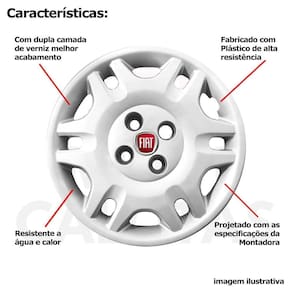 4x calota fiat uno palio siena mobi aro 14 com emblema 055cb Calota em plástico de alta resistência, Fabricado pela grid calotas com os mesmos padrões e exigências da montadora. Com logotipo incluso. Serve: Fiat palio - todos Fiat uno - todos Fiat siena - todos Fiat fiorino - exceto nova fiorino Fiat 147 - todos Fiat elba - todos Fiat oggi - todos Fiat panorama - todos Fiat prêmio - todos Características: - fabricado em plástico resistente - com dupla camada de verniz - resistente a água e calor - feito de acordo com os padrões da montadora - fixação: por parafusos - furação: 4x100 - cubo: baixo - cor: prata - referência: 055cb - marca: grid calotas Itens inclusos: - um 1 kit com quatro 4 calotas com emblema incluso. Dimensões unitário - diâmetro: 39 cm - altura: 4 cm Instalação A instalação é feita de forma simples, podendo ser feita por você mesmo. Não necessita retirar todos os parafusos. de 30 dias para defeitos de fabricação. Sobre o envio Envio podendo ser feito até o próximo dia útil após confirmação de pagamento. em até 3 , em caso de boleto Política de troca Sempre estamos interessados em sua satisfação. Caso não receba o produto exatamente como no anúncio, com algum defeito ou no transporte, Você poderá trocar e devolver a qualquer momento, sem pressa, sem prazo e principalmente sem custos desde que o produto esteja sem uso e na mesma condição da data da compra . No caso de devolução por compra de tamanho errado, desistência ou mudança de intenção, Neste caso o cliente deve arcar com o custo da devolução da mercadoria e nós arcamos com o custo de reenvio Da mercadoria nova. Marca: Não Informado