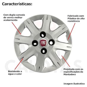 Calota em Plástico de Alta resistência, Fabricado pela Grid Calotas com os mesmos padrões e exigências da montadora. Com logotipo incluso. Jogo de Calotas para o Fiat Uno Way - Mille - Palio - Siena - Fiorino Todos os Anos Aro 13. NÃO SERVE nos Fiat Strada - Fiat Palio Adventure - Fiat Nova Fiorino CARACTERÍSTICAS: - Fabricado em Plástico Resistente - Com dupla camada de verniz - Resistente a água e calor - Feito de acordo com os padrões da montadora - Fixação: por Parafusos - Furação: 4x100 - Cubo: Baixo - Cor: Prata - Referência: 072CB - Marca: Grid Calotas ITENS INCLUSOS: - Um 1 Kit com quatro 4 calotas para Roda Aro 13 com Emblema Incluso. DIMENSÕES Unitário - Diâmetro: 37 cm - Altura: 4 cm INSTALAÇÃO A instalação é feita de forma simples, podendo ser feita por você mesmo. Não necessita retirar todos os parafusos. de 30 dias para defeitos de fabricação. SOBRE O ENVIO Envio podendo ser feito até o próximo dia útil após confirmação de pagamento. em até 3 , em caso de boleto POLÍTICA DE TROCA Sempre estamos interessados em sua satisfação. Caso não receba o produto exatamente como no anúncio, com algum defeito ou no transporte, Você poderá trocar e devolver a qualquer momento, sem pressa, sem prazo e principalmente sem custos desde que o produto esteja sem uso e na mesma condição da data da compra . No caso de devolução por compra de tamanho errado, desistência ou mudança de intenção, Neste caso o cliente deve arcar com o custo da devolução da mercadoria e nós arcamos com o custo de reenvio Da mercadoria nova. Eu clicando em comprar 1 unidade equivale 4 calotas Resposta: sim O emblema é resistente a água e calor Resposta: O emblema é de alta qualidade já aplicado na calota com cola especial O emblema tem relevo Resposta: Todos emblemas tem um pouco de relevo A calota pode ser aplicada em outro aro Resposta: Recomendamos a instalação somente no aro correto da calota Tem Resposta: Sim, total para defeitos de fabricação Serve eu outro carro além dos descritos no anuncio Resposta: Recomendamos a instalação somente dos carros descritos acima A calota é resistente Resposta: Sim a calota é bem resistente e com uma ótima camada de verniz O valor anunciado são quantas peças Resposta: O valor anunciado é referente a 4 calotas Essa calota é para roda de ferro A foto é real do produto Resposta: sim a foto é real do produto apenas com fundo branco Precisa tirar os 4 parafusos da roda e subir o carro Resposta: Não, só retira 3 parafusos e não precisa subir o carro no macaco Somos a multi calotas Estamos no mercado desde 2010 e buscamos a dedo os melhores produtos Do mercado para que você cliente fique 100% satisfeito. Tags apenas para indexação em buscadores Calota;carlota;fosca;nitro;jogo;15;14;13;kit;calotinha;tampa;rodas;nova;metalica; Central;miolo;esportiva;prata;vw;fiat;gm;ford;renault;peugeot;esport;cromada; Carro;tampinha;ds4