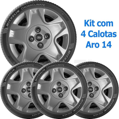 4x Calota Ford Fiesta Aro 14 Grafite com Emblema 025cb Calota em Plástico de Alta resistência, Fabricado pela Grid Calotas com os mesmos padrões e exigências da montadora. Com logotipo incluso. SERVE: Ka - todos Fiesta - todos Escort - todos Courier - todos Focus - todos Mondeo - todos Verona - todos Versalhes - todos CARACTERÍSTICAS: - Fabricado em Plástico Resistente - Com dupla camada de verniz - Resistente a água e calor - Feito de acordo com os padrões da montadora - Fixação: por Parafusos - Furação: 4x108 - Cubo: Baixo - Cor: Cinza Grafite - Referência: 025cb - Marca: Grid Calotas ITENS INCLUSOS: - Um 1 Kit com Quatro 4 Calotas com Emblema Incluso. DIMENSÕES Unitário - Diâmetro: 39 cm - Altura: 4 cm INSTALAÇÃO A instalação é feita de forma simples, podendo ser feita por você mesmo. Não necessita retirar todos os parafusos. de 30 dias para defeitos de fabricação. Marca: Não Informado