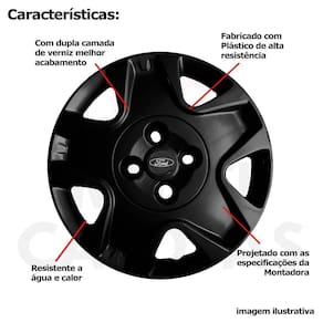 4x Calota Ford Fiesta Hatch Sedan Aro 14 Preto com Emb 025cb Calota em Plástico de Alta resistência, Fabricado pela Grid Calotas com os mesmos padrões e exigências da montadora. Com logotipo incluso.