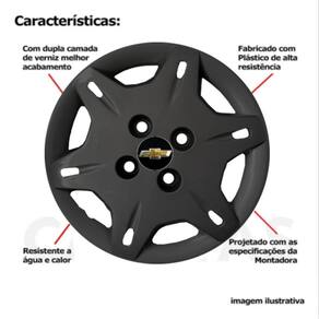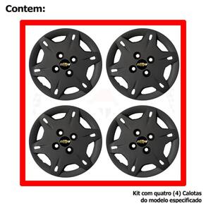 4x Calota Gm Corsa Celta Aro 13 Preto 004cb Calota em Plástico de Alta resistência, Fabricado pela Grid Calotas com os mesmos padrões e exigências da montadora. Com logotipo incluso. SERVE: GM Corsa - todos GM Celta - todos GM Classic - todos CARACTERÍSTICAS: - Fabricado em Plástico Resistente - Com dupla camada de verniz - Resistente a água e calor - Feito de acordo com os padrões da montadora - Fixação: por Parafusos - Furação: 4x100 - Cubo: Baixo - Cor: Preto - Referência: 004cb - Marca: Grid Calotas ITENS INCLUSOS: - Um 1 Kit com Quatro 4 Calotas com Emblema Incluso. DIMENSÕES Unitário - Diâmetro: 37 cm - Altura: 4 cm INSTALAÇÃO A instalação é feita de forma simples, podendo ser feita por você mesmo. Não necessita retirar todos os parafusos. de 30 dias para defeitos de fabricação. Marca: Não Informado