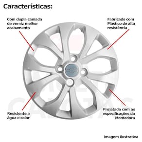4x Calota Gm Onix Prisma Aro 14 com Emblema Cinza 374cb Calota em Plástico de Alta resistência, Fabricado pela Grid Calotas com os mesmos padrões e exigências da montadora. Com logotipo incluso. SERVE: GM Onix - 2017/20 exceto joy GM Prisma - 2017/20 exceto joy CARACTERÍSTICAS: - Fabricado em Plástico Resistente - Com dupla camada de verniz - Resistente a água e calor - Feito de acordo com os padrões da montadora - Fixação: por Parafusos - Furação: 4x100 - Cubo: Baixo - Cor: Prata - Referência: 374CB - Marca: Grid Calotas ITENS INCLUSOS: - Um 1 Kit com Quatro 4 Calotas com Emblema Incluso. DIMENSÕES Unitário - Diâmetro: 39 cm - Altura: 4 cm INSTALAÇÃO A instalação é feita de forma simples, podendo ser feita por você mesmo. Não necessita retirar todos os parafusos. de 30 dias para defeitos de fabricação. SOBRE O ENVIO Marca: Não Informado