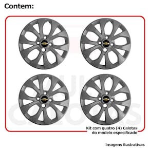 4x Calota Gm Onix Prisma Aro 14 Grafite com Emblema 374cb Calota em Plástico de Alta resistência, Fabricado pela Grid Calotas com os mesmos padrões e exigências da montadora. Com logotipo incluso. SERVE: GM Onix - 2017/20 exceto joy GM Prisma - 2017/20 exceto joy CARACTERÍSTICAS: - Fabricado em Plástico Resistente - Com dupla camada de verniz - Resistente a água e calor - Feito de acordo com os padrões da montadora - Fixação: por Parafusos - Furação: 4x100 - Cubo: Baixo - Cor: Cinza Grafite - Referência: 374CB - Marca: Grid Calotas ITENS INCLUSOS: - Um 1 Kit com Quatro 4 Calotas com Emblema Incluso. DIMENSÕES Unitário - Diâmetro: 39 cm - Altura: 4 cm INSTALAÇÃO A instalação é feita de forma simples, podendo ser feita por você mesmo. Não necessita retirar todos os parafusos. de 30 dias para defeitos de fabricação. SOBRE O ENVIO Marca: Não Informado