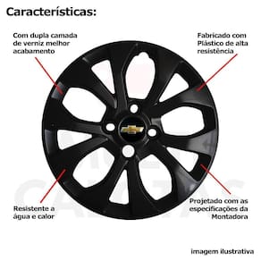 4x Calota GM Onix Prisma Aro 14 Preto com Emblema 374cb Calota em Plástico de Alta resistência, Fabricado pela Grid Calotas com os mesmos padrões e exigências da montadora. Com logotipo incluso. SERVE: GM Onix - 2017/20 exceto joy GM Prisma - 2017/20 exceto joy CARACTERÍSTICAS: - Fabricado em Plástico Resistente - Com dupla camada de verniz - Resistente a água e calor - Feito de acordo com os padrões da montadora - Fixação: por Parafusos - Furação: 4x100 - Cubo: Baixo - Cor: Preto - Referência: 374CB - Marca: Grid Calotas ITENS INCLUSOS: - Um 1 Kit com Quatro 4 Calotas com Emblema Incluso. DIMENSÕES Unitário - Diâmetro: 39 cm - Altura: 4 cm INSTALAÇÃO A instalação é feita de forma simples, podendo ser feita por você mesmo. Não necessita retirar todos os parafusos. de 30 dias para defeitos de fabricação. SOBRE O ENVIO Marca: Não Informado Ean: 7891088351633