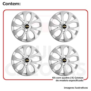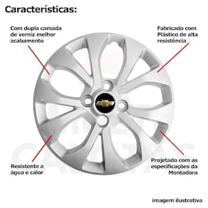 4x Calota Gm Onix Prisma Aro14 Ano 2017/20 com emblema 374cb Calota em Plástico de Alta resistência, Fabricado pela Grid Calotas com os mesmos padrões e exigências da montadora. Com logotipo incluso. SERVE: GM Onix - 2017/20 exceto joy GM Prisma - 2017/20 exceto joy CARACTERÍSTICAS: - Fabricado em Plástico Resistente - Com dupla camada de verniz - Resistente a água e calor - Feito de acordo com os padrões da montadora - Fixação: por Parafusos - Furação: 4x100 - Cubo: Baixo - Cor: Prata - Referência: 374CB - Marca: Grid Calotas ITENS INCLUSOS: - Um 1 Kit com Quatro 4 Calotas com Emblema Incluso. DIMENSÕES Unitário - Diâmetro: 39 cm - Altura: 4 cm INSTALAÇÃO A instalação é feita de forma simples, podendo ser feita por você mesmo. Não necessita retirar todos os parafusos. de 30 dias para defeitos de fabricação. SOBRE O ENVIO Marca: Não Informado Ean: 7897032173504