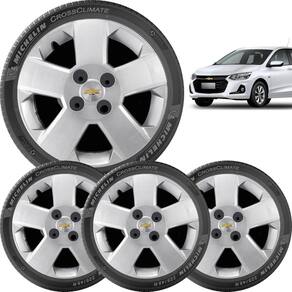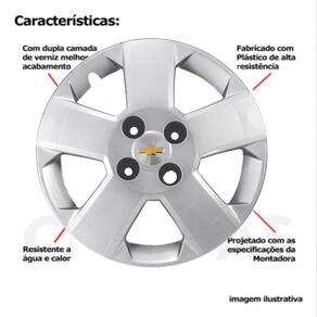 4x Calota Jogo Gm Prisma Onix Corsa Aro 14 087cb Calota para toda linha Gm aro 14 Modelo de parafusar na roda Cor prata Foto real do produto Valor anunciado é referente a 4 calotas Marca: Não Informado