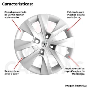 4x Calota Peugeot 206 207 208 Aro 14 Emblema Boton 410cb Calota em Plástico de Alta resistência, Fabricado pela Grid Calotas com os mesmos padrões e exigências da montadora. Com logotipo incluso. SERVE: Peugeot 206 - todos Peugeot 207 - todos Peugeot 208 - todos CARACTERÍSTICAS: - Fabricado em Plástico Resistente - Com dupla camada de verniz - Resistente a água e calor - Feito de acordo com os padrões da montadora - Fixação: por Parafusos - Furação: 4x108 - Cubo: Baixo - Cor: Prata - Referência: 410CB - Marca: Grid Calotas ITENS INCLUSOS: - Um 1 Kit com Quatro 4 Calotas com Emblema Boton. DIMENSÕES Unitário - Diâmetro: 39 cm - Altura: 4 cm INSTALAÇÃO A instalação é feita de forma simples, podendo ser feita por você mesmo. Não necessita retirar todos os parafusos. de 30 dias para defeitos de fabricação. SOBRE O ENVIO Marca: Não Informado