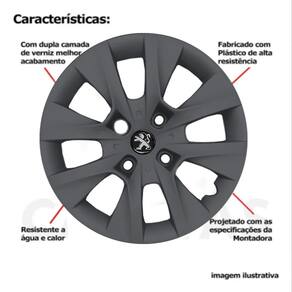 4x Calota Peugeot 206 207 208 Aro 14 Grafite 410cb Calota em Plástico de Alta resistência, Fabricado pela Grid Calotas com os mesmos padrões e exigências da montadora. Com logotipo incluso. SERVE: Peugeot 206 - todos Peugeot 207 - todos Peugeot 208 - todos CARACTERÍSTICAS: - Fabricado em Plástico Resistente - Com dupla camada de verniz - Resistente a água e calor - Feito de acordo com os padrões da montadora - Fixação: por Parafusos - Furação: 4x108 - Cubo: Baixo - Cor: Grafite - Referência: 410CB - Marca: Grid Calotas ITENS INCLUSOS: - Um 1 Kit com Quatro 4 Calotas com Emblema Incluso. DIMENSÕES Unitário - Diâmetro: 39 cm - Altura: 4 cm INSTALAÇÃO A instalação é feita de forma simples, podendo ser feita por você mesmo. Não necessita retirar todos os parafusos. de 30 dias para defeitos de fabricação. SOBRE O ENVIO Marca: Não Informado