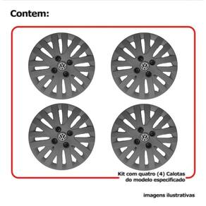 4x Calota Vw Gol Voyage Saveiro Aro 14 Grafite com Emb 009ca Calota em Plástico de Alta resistência, Fabricado pela Grid Calotas com os mesmos padrões e exigências da montadora. Com logotipo incluso. SERVE: VW Gol - até 2012 VW Voyage - até 2012 VW Saveiro - todos VW Polo Classic - todos VW Golf - todos VW Santana - todos VW Parati - todos VW Passat - todos CARACTERÍSTICAS: - Fabricado em Plástico Resistente - Com dupla camada de verniz - Resistente a água e calor - Feito de acordo com os padrões da montadora - Fixação: por Parafusos - Furação: 4x100 - Cubo: Alto - Cor: Grafite - Referência: 009ca - Marca: Grid Calotas ITENS INCLUSOS: - Um 1 Kit com Quatro 4 Calotas com Emblema Incluso. DIMENSÕES Unitário - Diâmetro: 39 cm - Altura: 4 cm INSTALAÇÃO A instalação é feita de forma simples, podendo ser feita por você mesmo. Não necessita retirar todos os parafusos. de 30 dias para defeitos de fabricação. SOBRE O ENVIO Marca: Não Informado Ean: 7899145205134