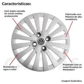 4x calota vw gol voyage saveiro até 2012 cubo alto 117ca Calota em plástico de alta resistência, Fabricado pela grid calotas com os mesmos padrões e exigências da montadora. Com logotipo incluso. Jogo de calotas para a linha volkswagen para rodas de ferro cubo alto aro 14. Serve: Vw gol - até 2012 Vw voyage - até 2012 Vw saveiro - todos Características: - fabricado em plástico resistente - com dupla camada de verniz - resistente a água e calor - feito de acordo com os padrões da montadora - fixação: por parafusos - furação: 4x100 - cubo: alto - cor: prata - referência: 117ca - marca: grid calotas Itens inclusos: - um 1 kit com quatro 4 calotas com emblema incluso. Dimensões unitário - diâmetro: 39 cm - altura: 4 cm Instalação A instalação é feita de forma simples, podendo ser feita por você mesmo. Não necessita retirar todos os parafusos. de 30 dias para defeitos de fabricação. Sobre o envio Marca: Não Informado