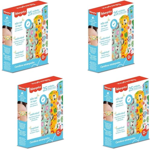 Marca: fisher price Modelo: hc483 Quantidade: caixa com 25 curativos Estampas variadas: cada curativo possui estampas exclusivas e coloridas, com personagens e elementos lúdicos que encantam as crianças. Adesão confortável: fabricados com material de alta qualidade que garante uma aderência eficaz sem machucar a pele delicada das crianças. Respirabilidade: os curativos são projetados para permitir a ventilação adequada da pele, prevenindo irritações. Fácil aplicação: cada curativo é embalado individualmente, garantindo higiene e praticidade na aplicação. Uso pediátrico: ideal para pequenos cortes, arranhões e machucados, promovendo uma cura segura e rápida. Benefícios: