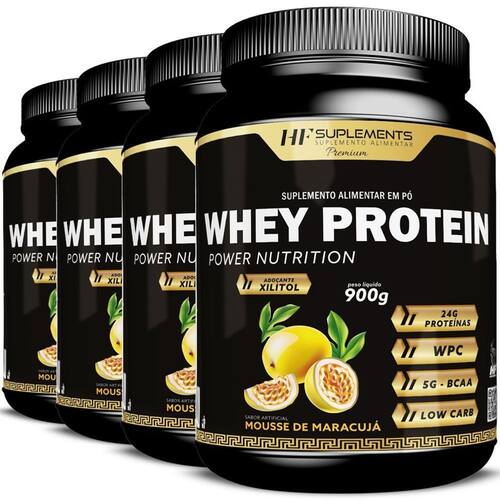 Através deste anúncio, você está adquirindo 4 quatro potes de 4x whey protein power nutrition mousse de maracuja 900g hf suplementos