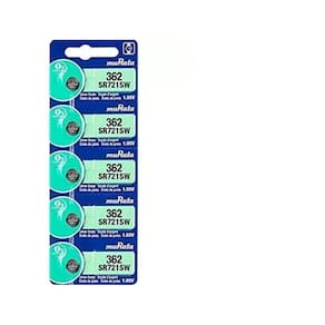Atenção sony agora é murata A empresa japonesa murata comprou a divisão de pilhas da sony Continua com a mesma embalagem e a mesma qualidade, porém, com a marca murata Modelo - 362 sr721sw Marca sony murata Quantidade 5 unidade Tensão nominal 1,55v Cartela com 5 unidades Dimensões 7,9mm x 2,1mm Capacidade 25 mah Baterias sony, baterias relógio, baterias sony relógio, baterias camera, baterias controle, sony controle, Sony relógio, sony camera Aplicações: A bateria 362 murata é Utilizado em diversos modelos e marcas de relógios, também usa-se em brinquedos, Calculadoras entre outros. A bateria murata antiga sony 362 é também conhecida como sr721sw. Características Bateria botão Pilha moeda Lithium de alta durabilidade Utilização geral Embalagem 90 dias Marca: Não Informado