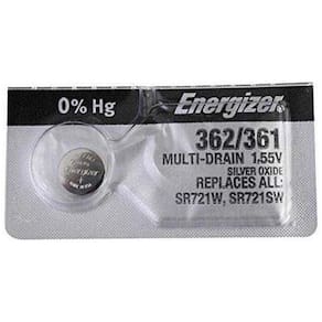 Marca: ENERGIZER Modelo: 362 /361, SR721SW, Voltagem: 1,55V Tipo: Oxido de Prata Não Recarregável Tamanho: 6.8mm x 2.6mm Cartela 5 baterias Peso: 20g
