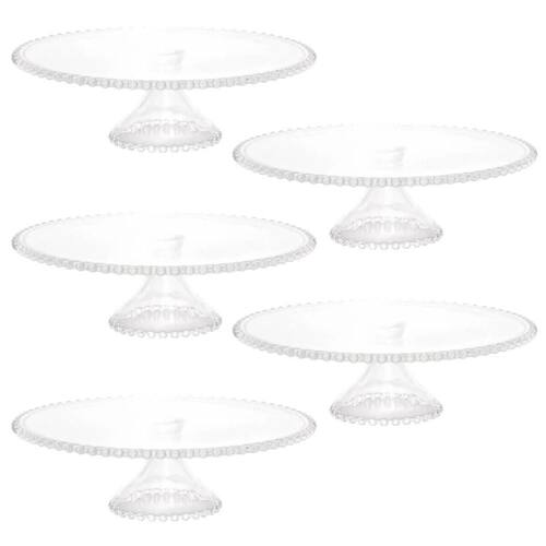5 Boleiras com Pé Prato Porta Bolo 31cm Cristal Pearl Bolos Doces e Tortas Wolff.