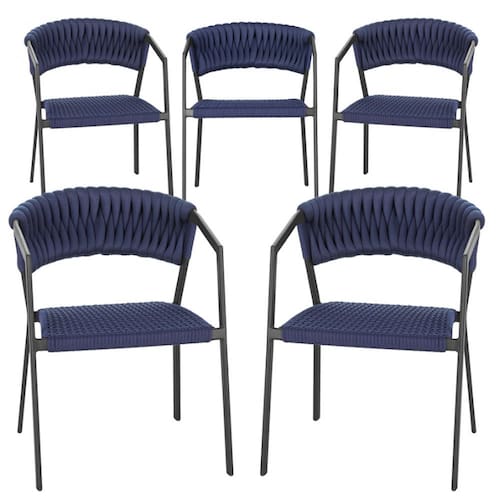 5 Cadeiras Atenas Tricô Náutico e Alumínio com Proteção UV para Varanda, Cozinha, Área, Jardim - Pintura Preto - Azul Marinho