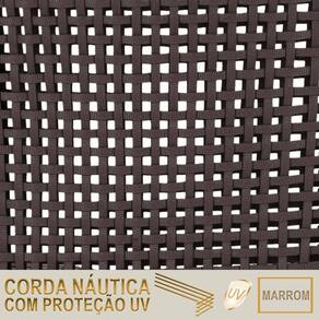 O assento e o encosto sao habilmente trancados com corda nautica de alta qualidade, oferecendo nao apenas um design atraente, mas tambem um conforto excepcional.