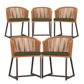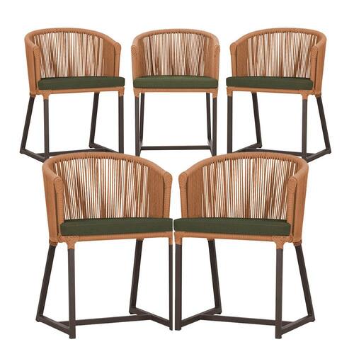 5 Cadeiras de Jantar Área Noronha em Alumínio com Pintura Marrom Corda Náutica E13 Trama - Laranja