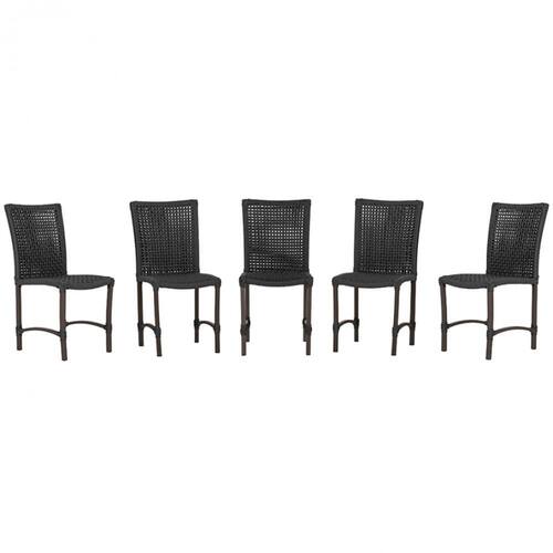 5 Cadeiras de Jantar Cannes de Alumínio com Pintura Marrom e Trama Tela de Corda Náutica - Preto