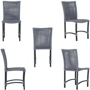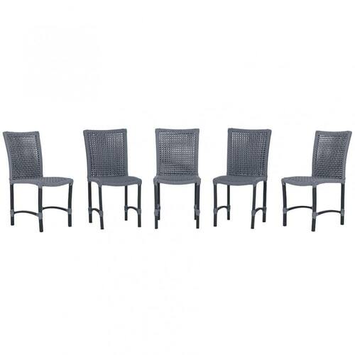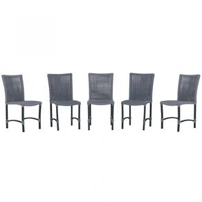 5 Cadeiras De Jantar Cannes De Alumínio Pintura Preta Trama Prata