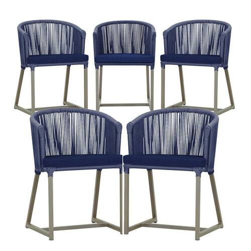 5 Cadeiras De Jantar Noronha Fendi Corda Náutica E10 Trama Azul