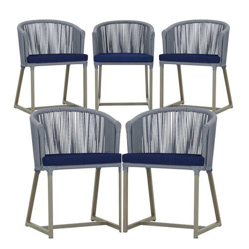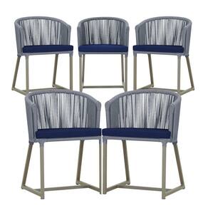 5 Cadeiras De Jantar Noronha Fendi Corda Náutica E10 Trama Prata