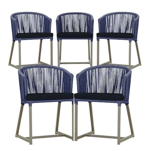 5 Cadeiras De Jantar Noronha Fendi Corda Náutica E12 Trama Azul