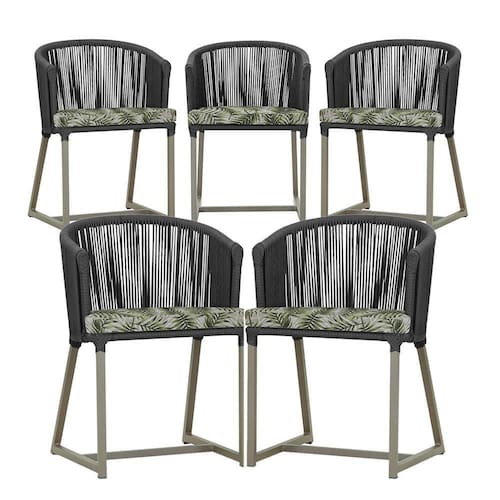 5 Cadeiras De Jantar Noronha Fendi Corda Náutica E5 Trama Preto