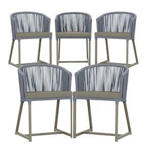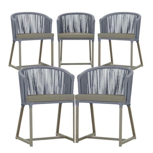5 Cadeiras De Jantar Noronha Fendi Corda Náutica E8 Trama Prata