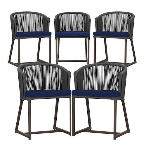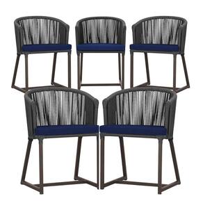 5 Cadeiras De Jantar Noronha Marrom Corda Náutica E10 Trama Preto