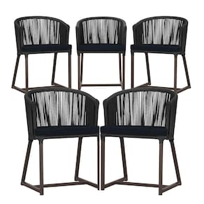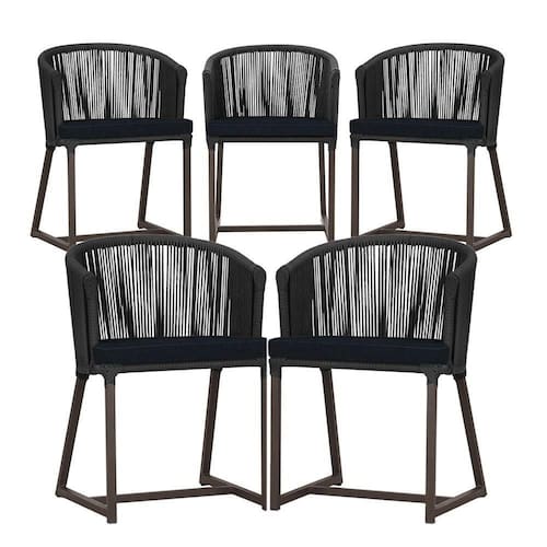 5 Cadeiras De Jantar Noronha Marrom Corda Náutica E12 Trama Preto