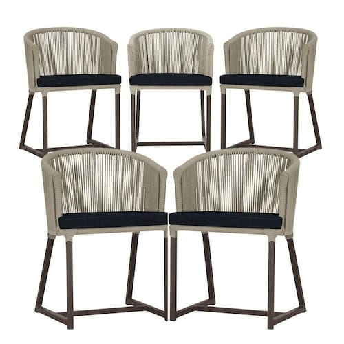 5 Cadeiras De Jantar Noronha Marrom Corda Náutica E12 Trama Rami
