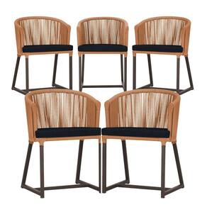 5 Cadeiras De Jantar Noronha Marrom Corda Náutica E12 Trama Terra Cota