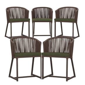 5 Cadeiras De Jantar Noronha Marrom Corda Náutica E13 Trama Marrom