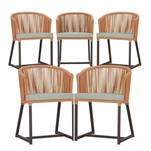 5 Cadeiras De Jantar Noronha Marrom Corda Náutica E3 Trama Terra Cota