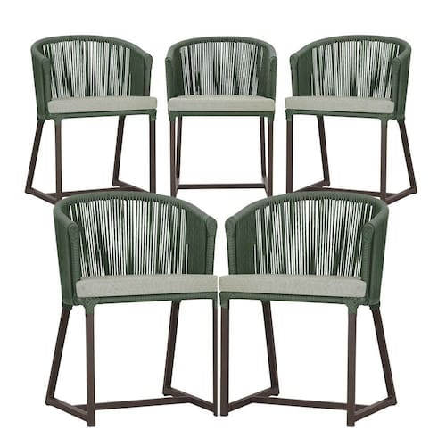 5 Cadeiras De Jantar Noronha Marrom Corda Náutica E3 Trama Verde