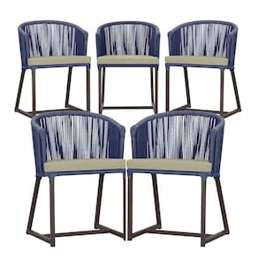 5 Cadeiras De Jantar Noronha Marrom Corda Náutica E7 Trama Azul