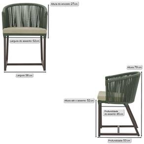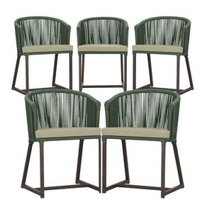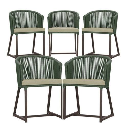5 Cadeiras De Jantar Noronha Marrom Corda Náutica E7 Trama Verde