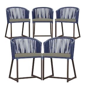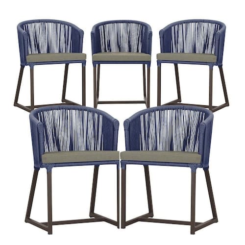 5 Cadeiras De Jantar Noronha Marrom Corda Náutica E8 Trama Azul