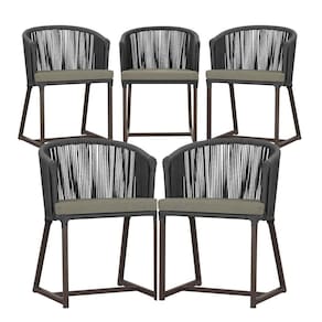 5 Cadeiras De Jantar Noronha Marrom Corda Náutica E8 Trama Preto