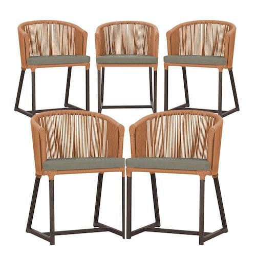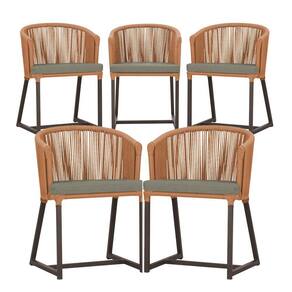 5 Cadeiras De Jantar Noronha Marrom Corda Náutica E8 Trama Terra Cota