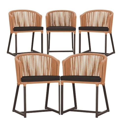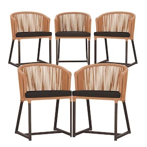 5 Cadeiras De Jantar Noronha Marrom Corda Náutica E9 Trama Terra Cota