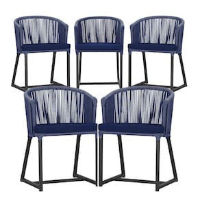 5 Cadeiras De Jantar Noronha Preta Corda Náutica E10 Trama Azul