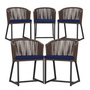 5 Cadeiras De Jantar Noronha Preta Corda Náutica E10 Trama Marrom