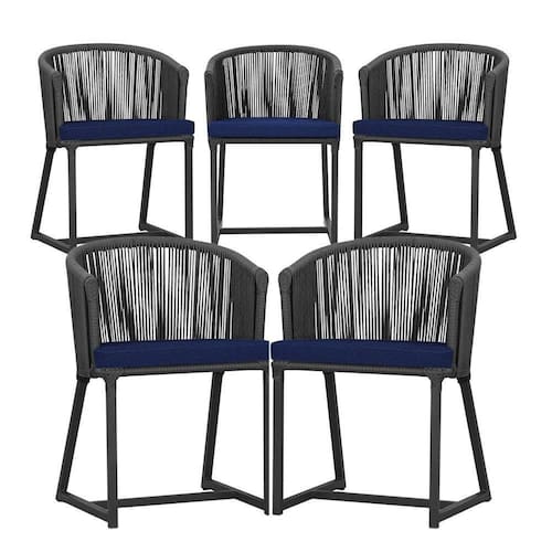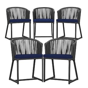 5 Cadeiras De Jantar Noronha Preta Corda Náutica E10 Trama Preto