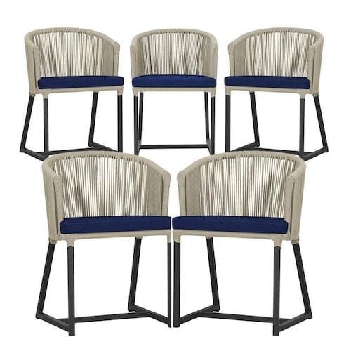 5 Cadeiras De Jantar Noronha Preta Corda Náutica E10 Trama Rami