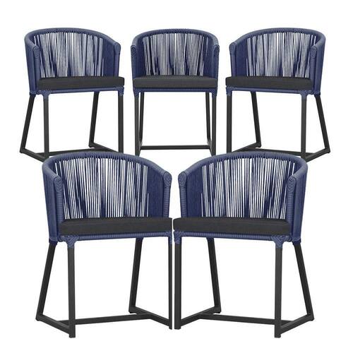 5 Cadeiras De Jantar Noronha Preta Corda Náutica E11 Trama Azul
